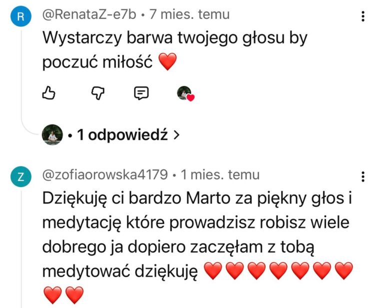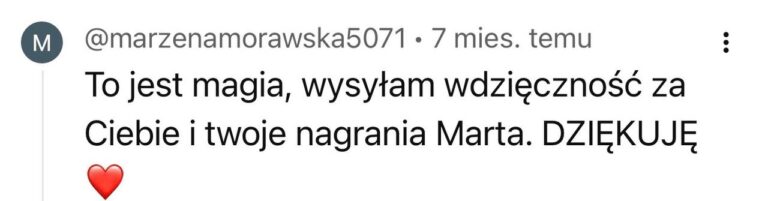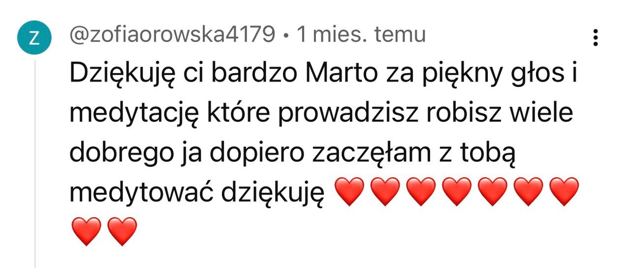 To jest proces czuły, ale głęboki. Może się zdarzyć, że podczas medytacji pojawi się smutek albo inne trudne uczucie. To normalne. Jeśli poczujesz, że jest tego za dużo – zawsze możesz do mnie napisać na adres mailowy hello@tumartakrol.com. A jeśli potrzebujesz pogłębionej rozmowy, umówimy się na sesję indywidualną. Nie zostawię Cię z tym samą.